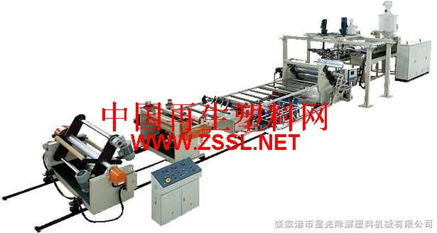 APET、PETG、CPET单层及多层共挤片材生产线 是目前国内技术先进、工艺成熟、设备稳定的片材生产线之一,与国内同类设备相比,综合效能高30%以上,此生产线同时也可用于生产PS、PP、PE等片材制品。此外,金纬公司还研制开发了CPET、HPET片材生产线,其技术已领先于国内先进水平。 APET/PETG/CPET片材生产线,APET片材生产线,PETG片材生产线,CPET片材生产线